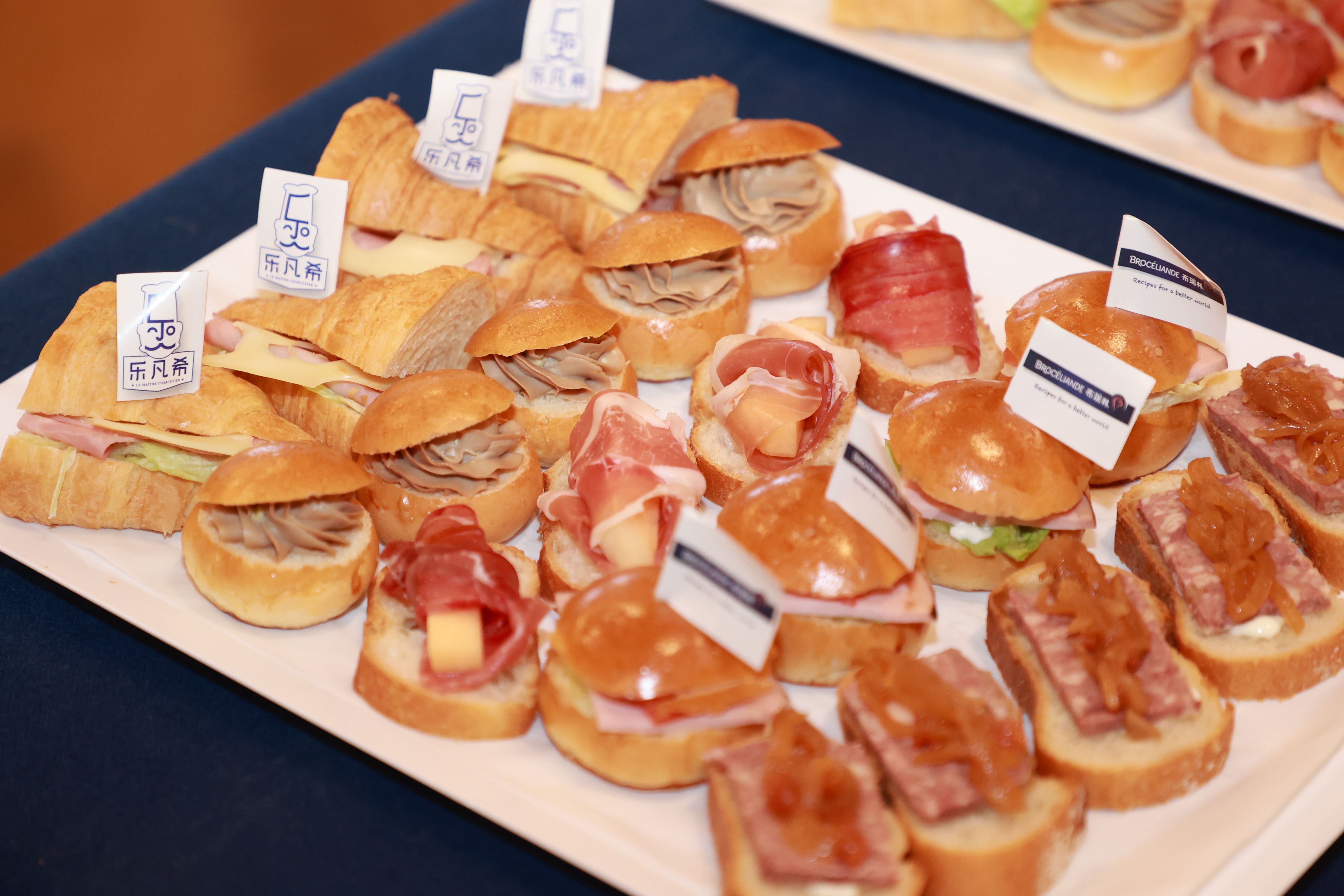 今日,新希望集團(tuán)兩會媒體溝通會在京召開。新聞中心周到地為記者朋友設(shè)置了茶歇區(qū)——來自樂凡希品牌的經(jīng)典西式低溫肉制品制作的茶點(diǎn)。
