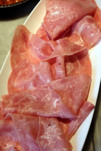 黑松露火腿登場(chǎng),菌子風(fēng)味十足。方形切片與吐司十分契合,迷人的黑松露香氣與酸面包搭配相得益彰。