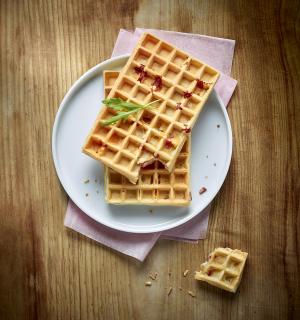 華夫餅配法式拉東,山羊奶酪和蘋果